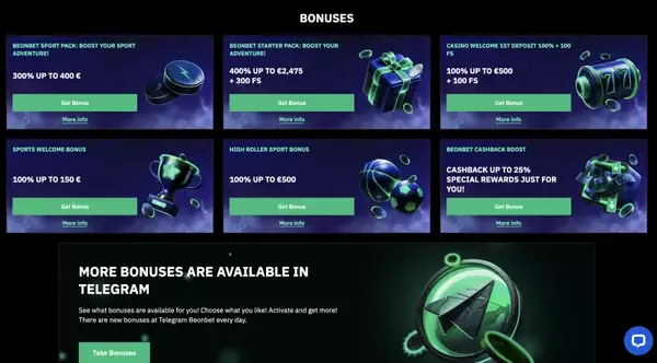 Μπόνους BeonBet, προσφορές και δραστηριότητα τουρνουά